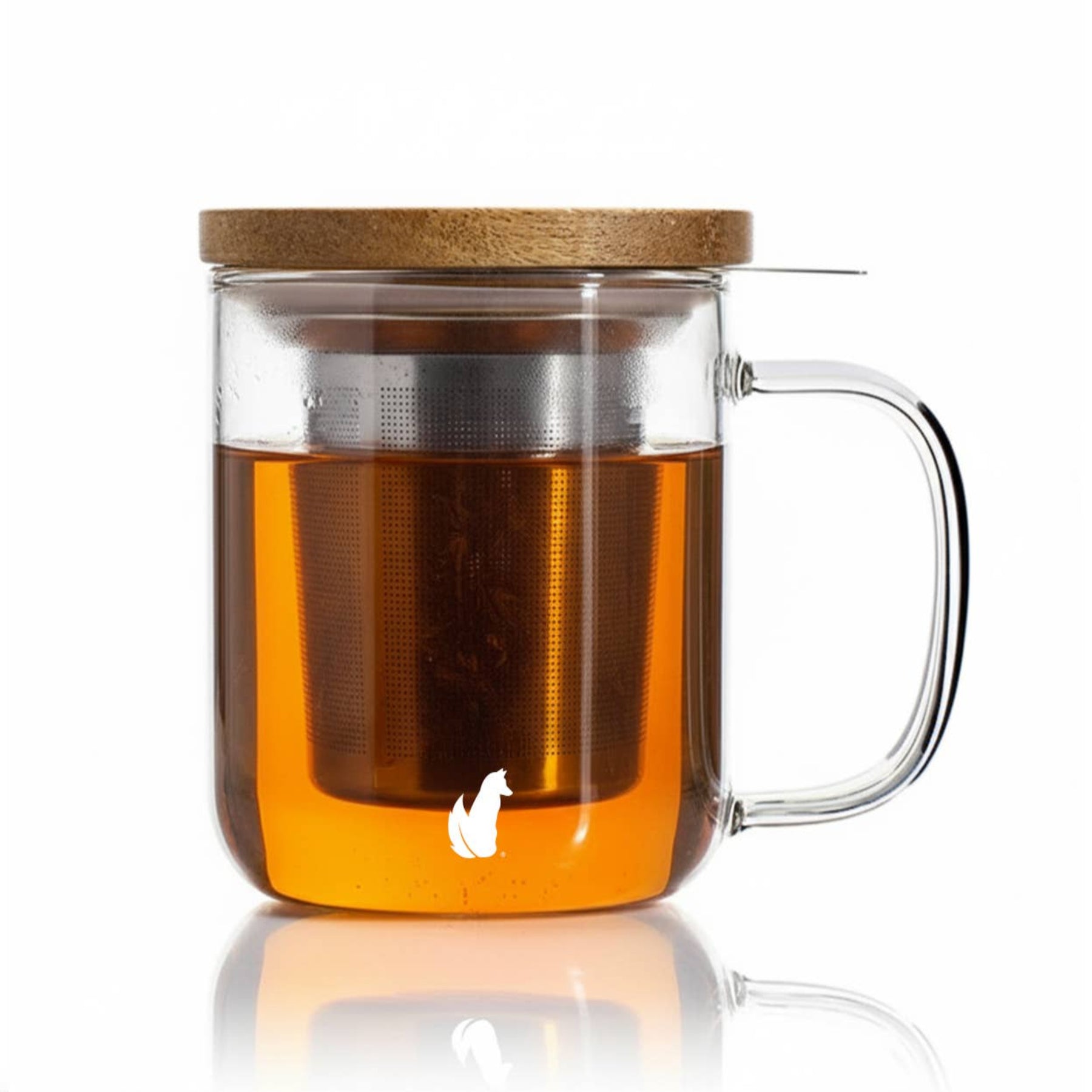 Make and enjoy the perfect cup every time. This glass tea mug is meant for loose leaf tea featuring an infuser and bamboo lid. The stainless steel infuser allows for effortless loose-leaf brewing, while the bamboo lid doubles as a coaster to keep surfaces clean.