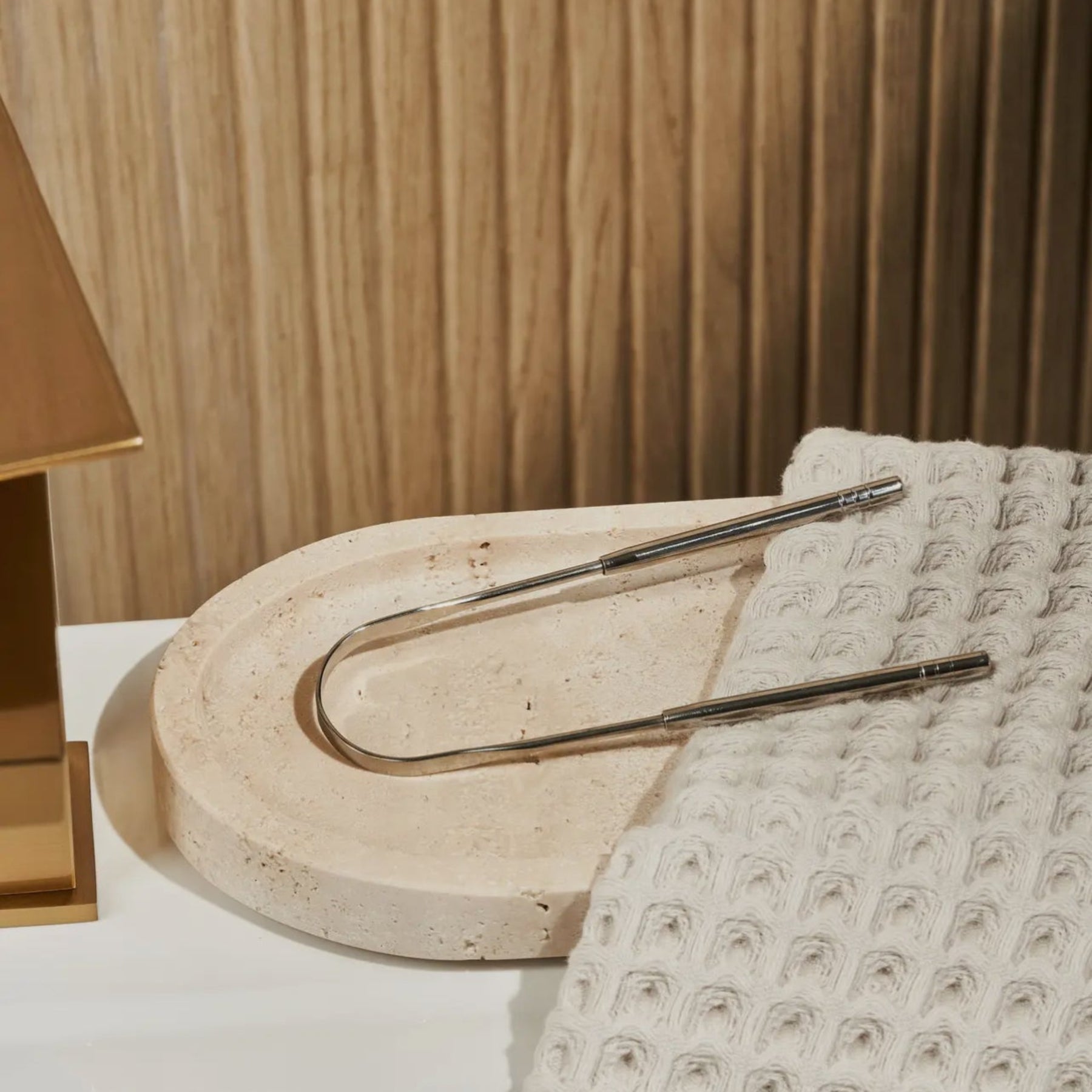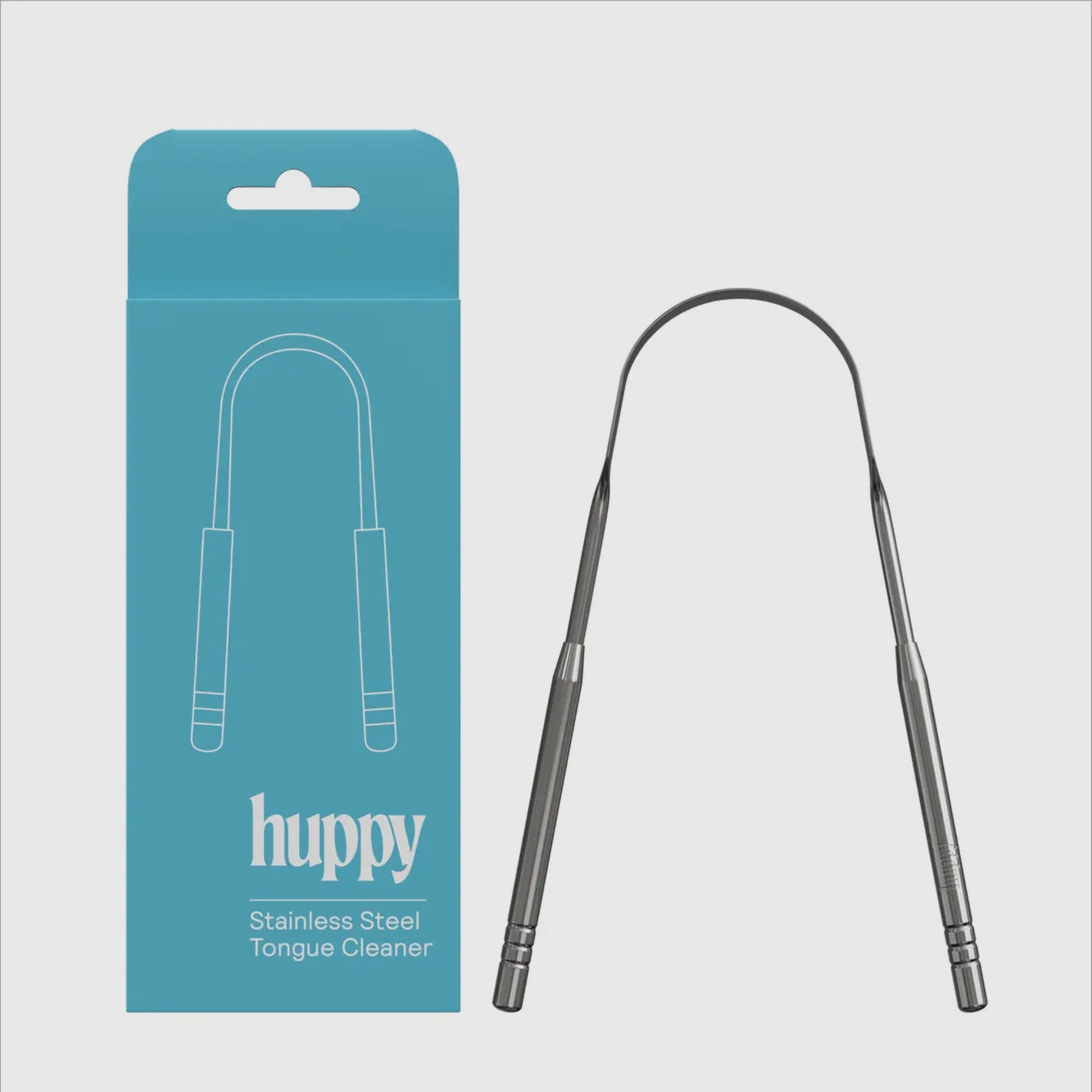 How to Use: After brushing your teeth with Huppy toothpaste tablets, gently scrape the back of your tongue and work your way forward. Do this a few times, rinsing the scraper between uses. When finished, clean the tongue scraper with warm water and soap. Pat dry with a towel.